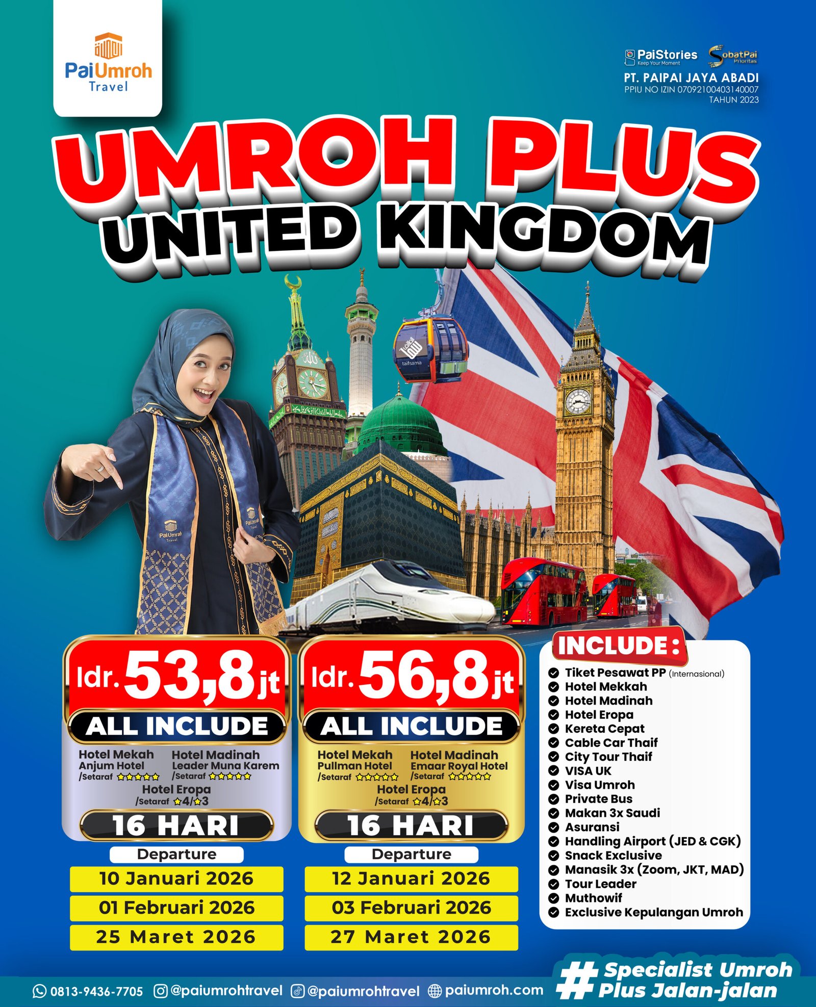 1. IMIGRASI & KEBIJAKAN PEMERINTAH : Imigrasi negara yang dikunjungi memiliki hak untuk menerima dan menolak tamu untuk berkunjung. Apabila ditolak, pihak PAIUMROH TRAVEL tidak bertanggung jawab akan hal ini, demikian juga dengan perubahan kebijakan pemerintah.